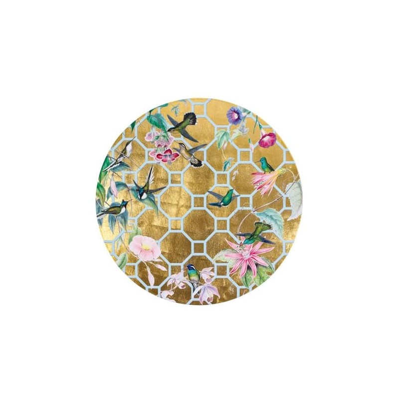 Hummingbird Trellis Round Lacquer Placemat in Gold - 1 Each