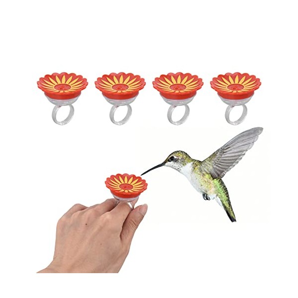 - 【Plastic material】this flower-shaped hummingbird feeder is made of plastic material, which is small, light, easy to carry, the edge around the hole is smooth so that it will your fingers when you wear it.
