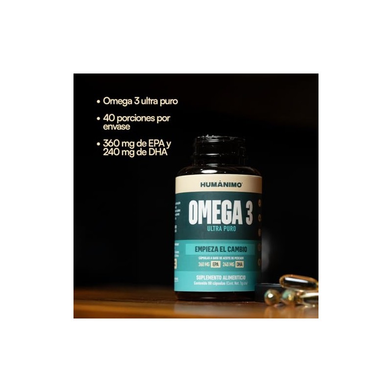 🌟 ⭐ HUMÁNIMO | Omega 3: Aceite de Pescado para Apoyo a la Salud Cardiaca, Mental y General con Vitaminas Naturales. Ideal para Ejercicio. 80 Cápsulas de 1000mg cada una. ⭐ 🌟