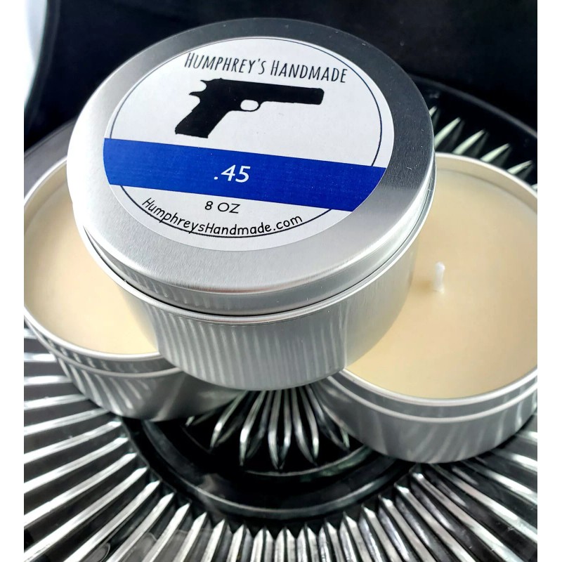 Humphrey's Handmade Masculine .45 Barbershop Scented Candle Soy Wax 8oz USA Oakmoss Earthy Patchouli