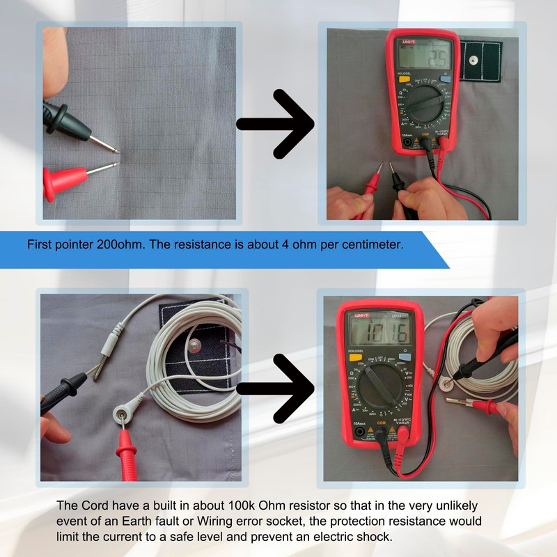 - 4. Our grounding sheet is very simple and convenient to use. One end of the grounding cord in the set is used to connect the bed sheet, and the other end is inserted into the grounding jack on the wall. Interlaced silver fibers can make the skin directly contact the grounding sheet at any time to achieve grounding. Silver fibers are made by tightly polymerizing silver and fibers. It is permanent and does not decrease over time and washing.