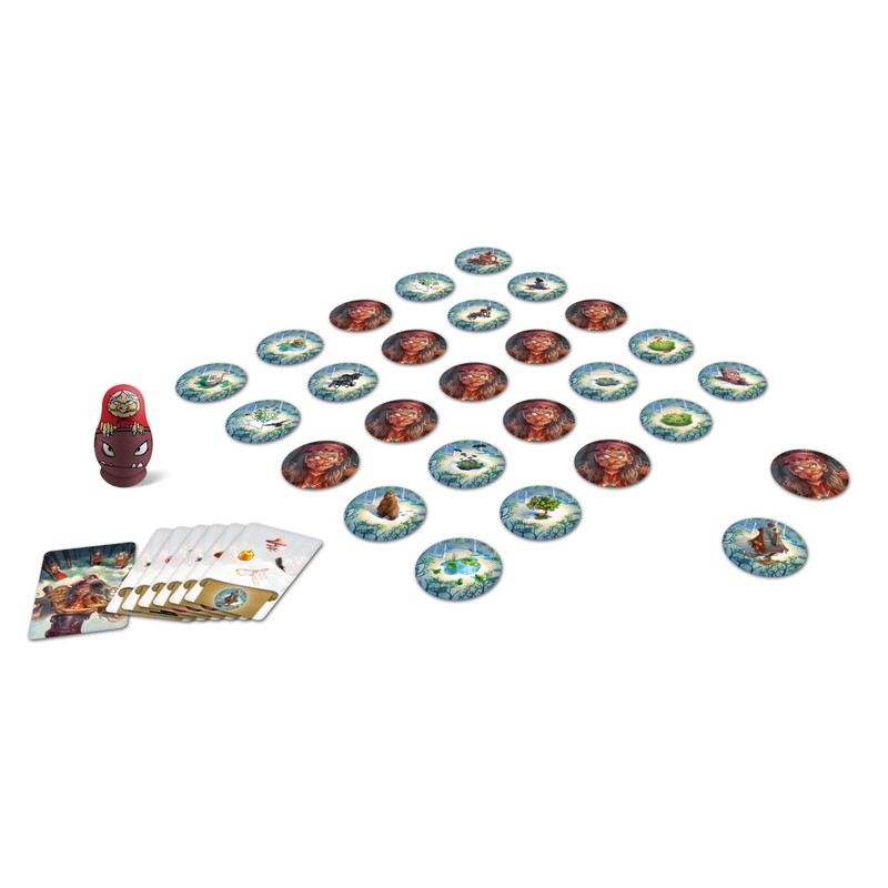 If Baba Yaga completes a circuit before the player finds the ingredients, she must place her spell card on the bottom of her stack; if she finds the ingredients, however, she gets to cast the spell on the card, lengthening or shortening the flight path, swapping the location of ingredients, requiring fewer ingredients next time, forcing an opponent to play in a distorted position, and so on. The first player to complete her three spells wins. Baba Yaga includes variants for younger players, more experienced players, and those who want the chicken – legged house to be constantly on the move. In the two player game, the single opponent does all the moving of Baba Yaga, but must swap hands with each move, keeping the inactive hand on her head.