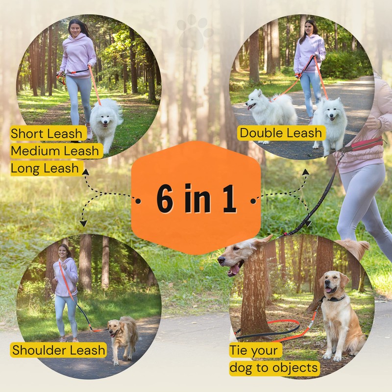 - 6 in 1 MULTIUSE: Adjust the length: short leash, medium leash or long leash. Attach another dog and use as double leash. Run with your dog hands free or tie the dog to any objects