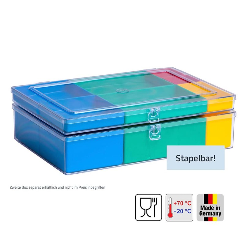 • Especially dimensionally stable: sorting box is made of particularly dimensionally stable polystyrene. This material is very temperature resistant (-20 to +70 °C).