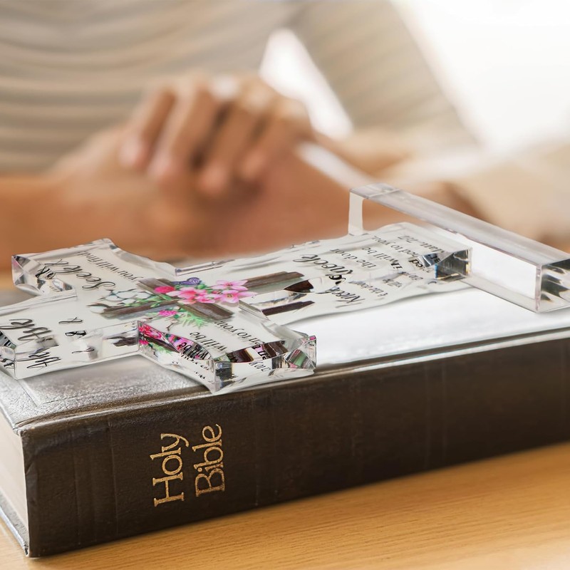 Whether as a personal keepsake or a thoughtful gift, this acrylic cross brings peace, faith, and encouragement to any space, making it a cherished addition to home decor.