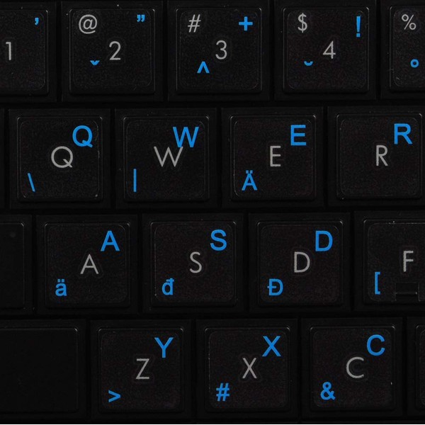 HUNGARIAN KEYBOARD LABELS ON TRANSPARENT BACKGROUND with BLUE LETTERING (14X14)