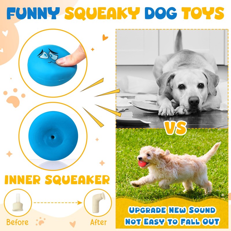 - Sufficient Quantity: you will receive 40 pcs squeaky dog toys in 10 colors with different expressions, 4 of each color, sufficient quantity and various colors to meet your dog's play needs and replacement; You can also give these latex dog toys as gifts to your friends and neighbors who have dogs, or donate squeaky toys to dog shelters