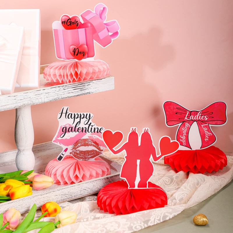 - Galentines Day Room Decorations: there are 8 pieces Galentine day honeycomb centerpiece with different styles in the package, the "happy Galentines day" "cheers" and "can't live without my girls" stand out, adding festival atmosphere by setting these red and pink Galentines day party decorations for the Galentines day cheers; And the quantity is enough for you to use and decorate the Galentines day, showing your care for your mates