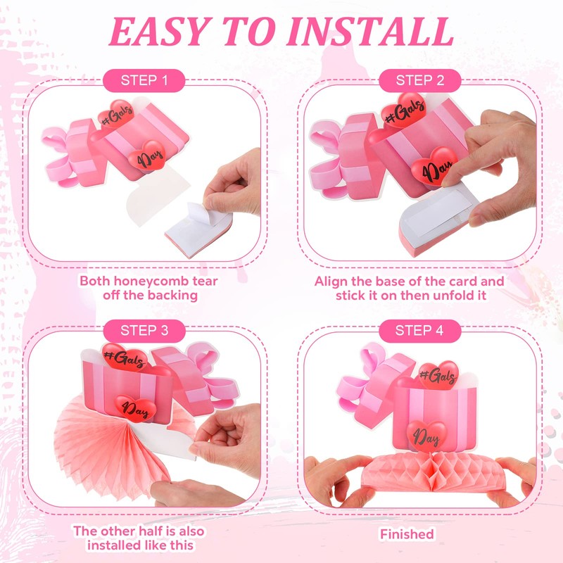 - Easy to Store: each Galentine honeycomb paper has an adhesive backing, just peel the backing off and stick the card on the cross section of the honeycomb paper, extend along the circular path and stick to the other side, which will not take up so much time