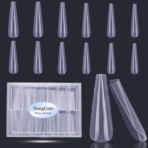 HungGato120Pcs Dual Nail Form Poly Extension Gel Builder Nail Gel Flat Stiletto Reusable Nail Molds Coffin 12 Sizes for Gel Manicure Nail Art Design Salon DIY at Home