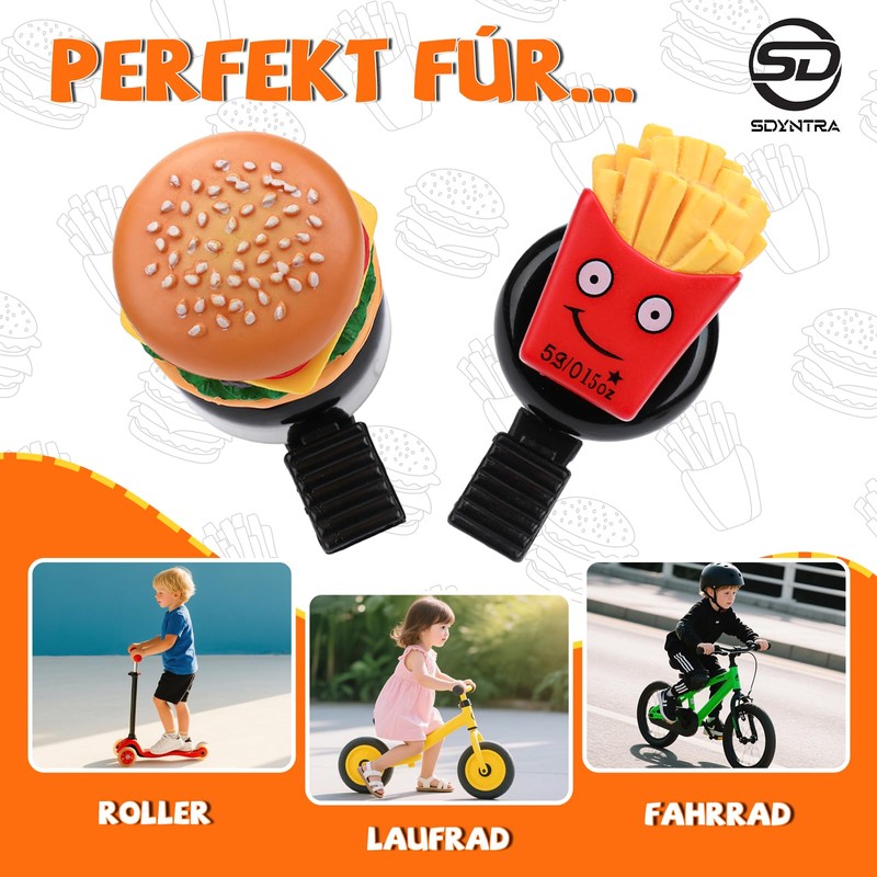 - 1. The Fast-Fun set for little adventurers - Bicycle bells in the iconic burger and chips design bring fun, style and safety to any children's bike.