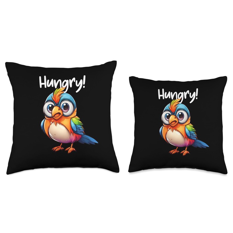 Hungry Bird Feeder for Bird Lovers Wild Life Nature Throw Pillow