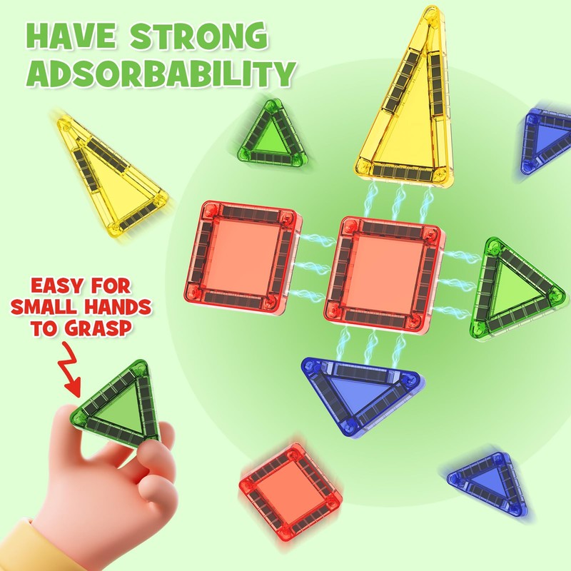 - A sleek magnetic building block set for imaginative young creators: Soft-hued blocks are neatly stored in a green organizer, with every playful detail designed to spark creativity and joy!