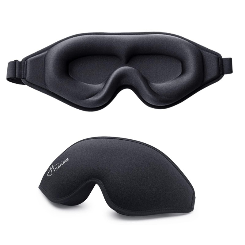 Hunrimu Sleep Eye Mask for Women Men, Soft and Comfortable Night Eye Mask for Sleeping, 3D Blockout Eye Cover for Travel, Blindfold with Adjustable Strap (Black)