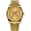 - 41 mm gold plated stainless steel case with screw down crown, gold plated stainless steel band with deployment clasp, transparent back cover