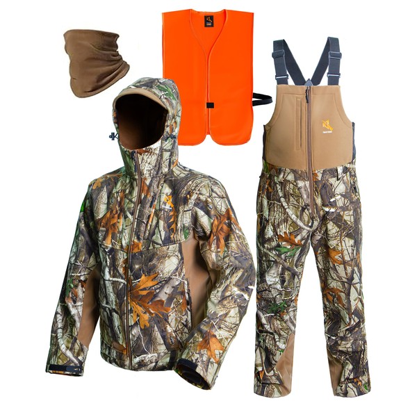 Hunt Quiet Hunting Clothes for Men with Face Mask, Silent Water Resistant Hunting Jacket and Bibs,Blaze Orange Vest &Face Mask (Next Camo G2, L)