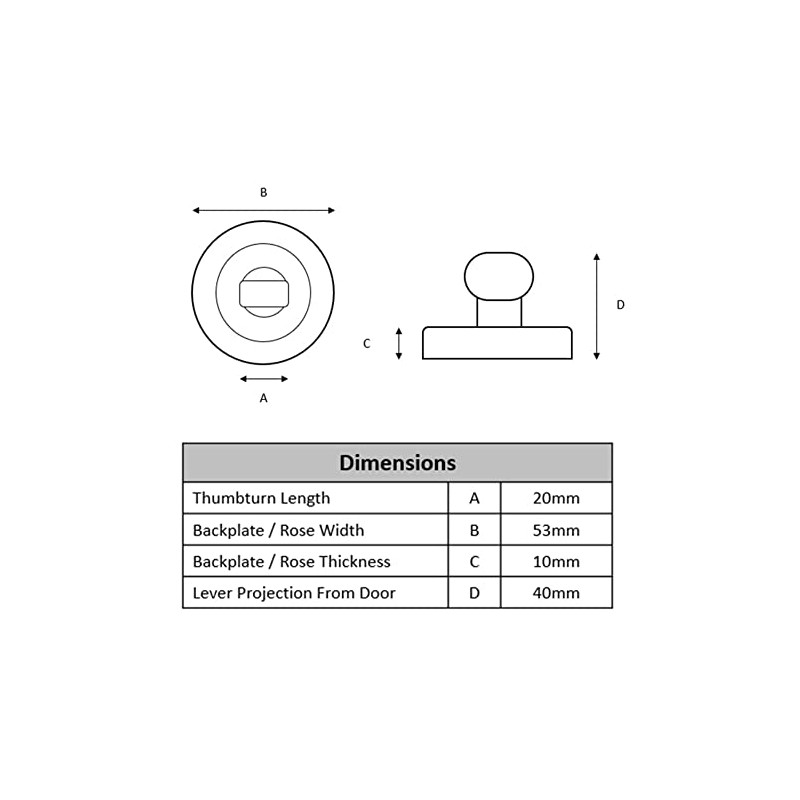 - FINISH & MEASUREMENT: Black Matt 52mm (dia) x 10mm (thick) rose. 5mm bathroom spindle