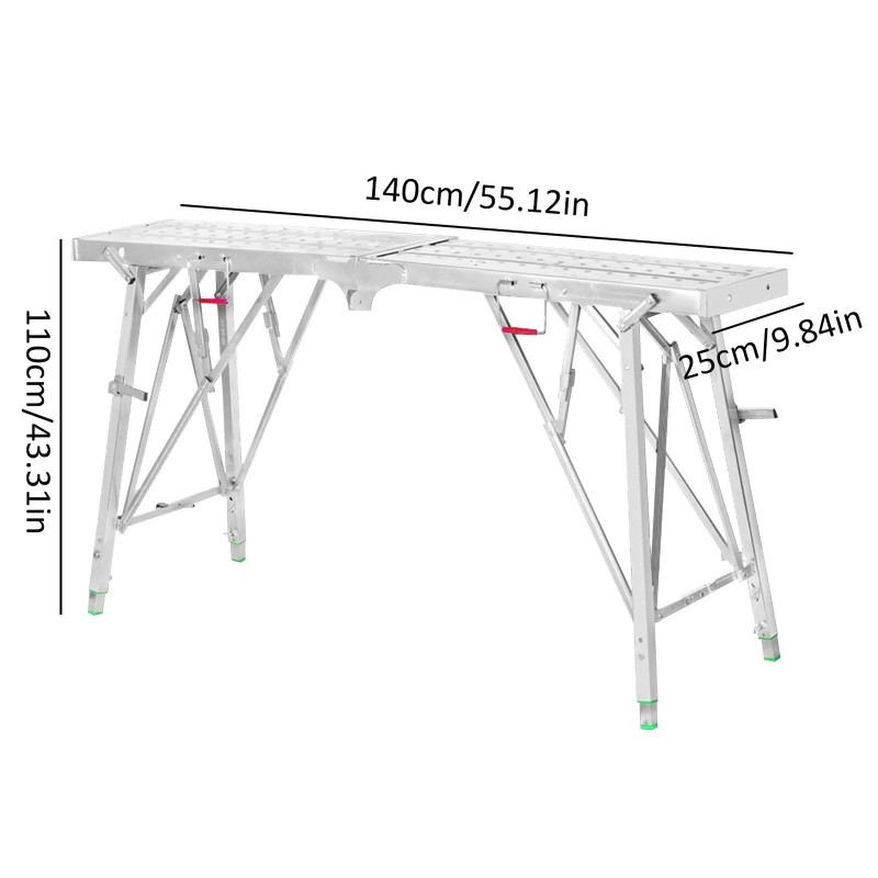 140 x 25cm Folding Scaffolding Platform Work Bench Scaffold Adjustable Height-