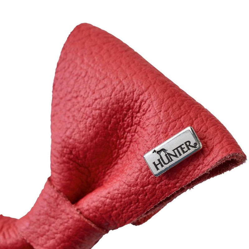 Look chic and throw it in bowl for a special occasion - sometimes it has to be simple! For Christmas, large family celebrations or a round birthday, the handmade Paris bow tie can be simply pushed onto the collar of the four-legged friend and it is perfectly dressed for celebrations of all kinds. The decorative Paris collar bow tie made of cowhide nappa leather in the finest quality glows in a rich, festive red. It gives any collar from the Hunter range with a width of 2 - 3.5 cm a festive character. Two narrow and two wide rubber bands on the back hold the bow tie reliably in a horizontal position. Paris is also ideal for beautiful keepsake photos with your four-legged friend. One thing is certain: dogs will never overlook with the real leather bow tie, and with a little luck even bounces out at the celebrations that some extra treats for Bello...