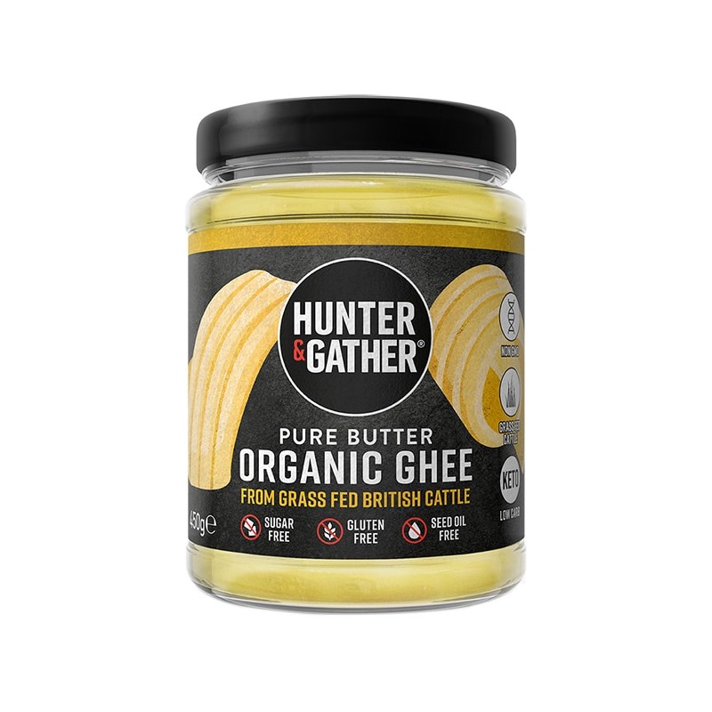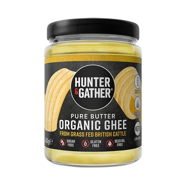 Hunter & Gather A CREAMY ORGANIC GHEE FROM BRITISH, GRASS FED CATTLE. PERFECT FOR COOKING, FRYING, BAKING AND ADDING TO COFFEE. Pure Butter Organic Ghee From Grass FED British Cattle 450 g450g