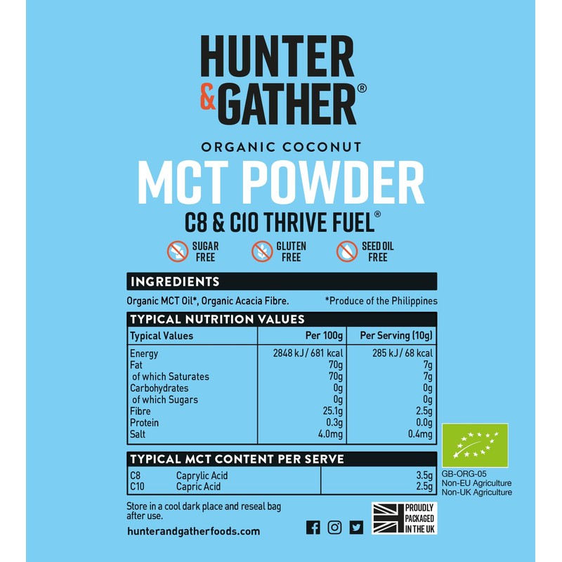 Hunter & Gather Hunter & Gather MCT Pulver C8/C10 - unterst1tzt Keto- und (IF)-Fasten, wird in kugelsicherem und fetthaltigem Kaffee verwendet, ohne Samen- und Pflanzen?l