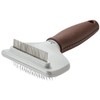 - Combination brush with ergonomically shaped handle in high-quality leather look for long, medium and short-haired dogs and cats