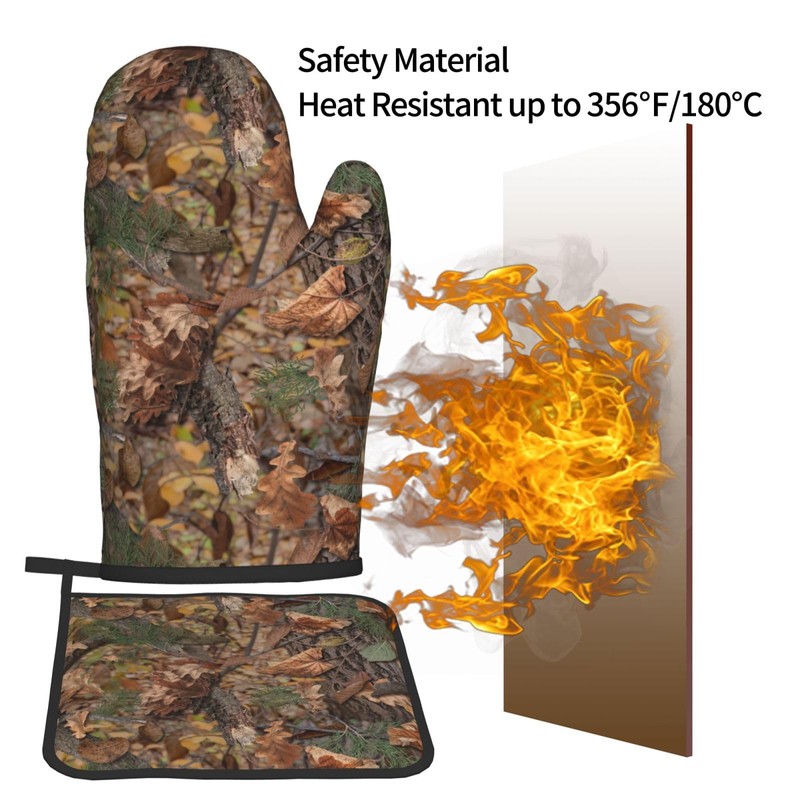 Hunting Camo Oven Mitt and Pot Holder Set Oven Glove for Kitchen Baking Cooking Grilling