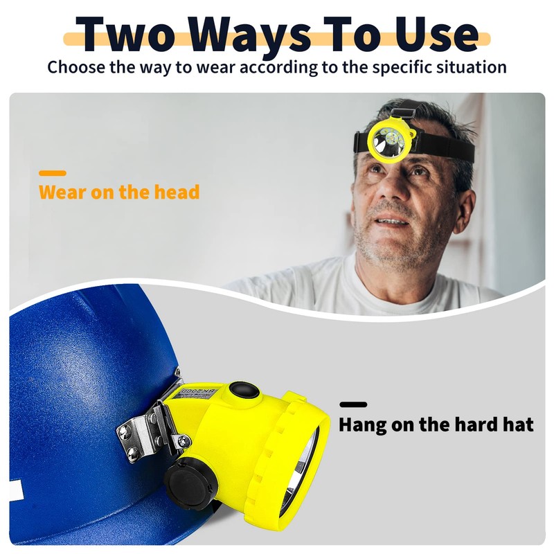 - ✔Two Use Options: The mining headlamp can hang on the hard hat, it also can wear on the head with a head band. Smart size and light weight, easy to use.