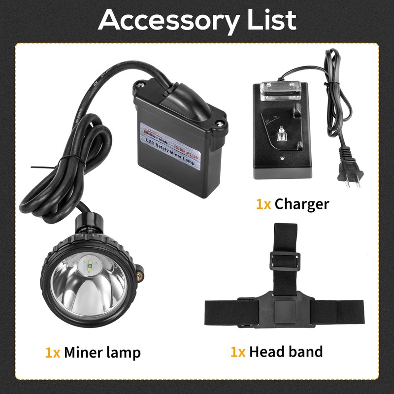 • ➤ What You Will Get? 1* Mining headlamp (8000mA battery pack included). 1* Head band. 1* Battery charger. 1* Retail package.