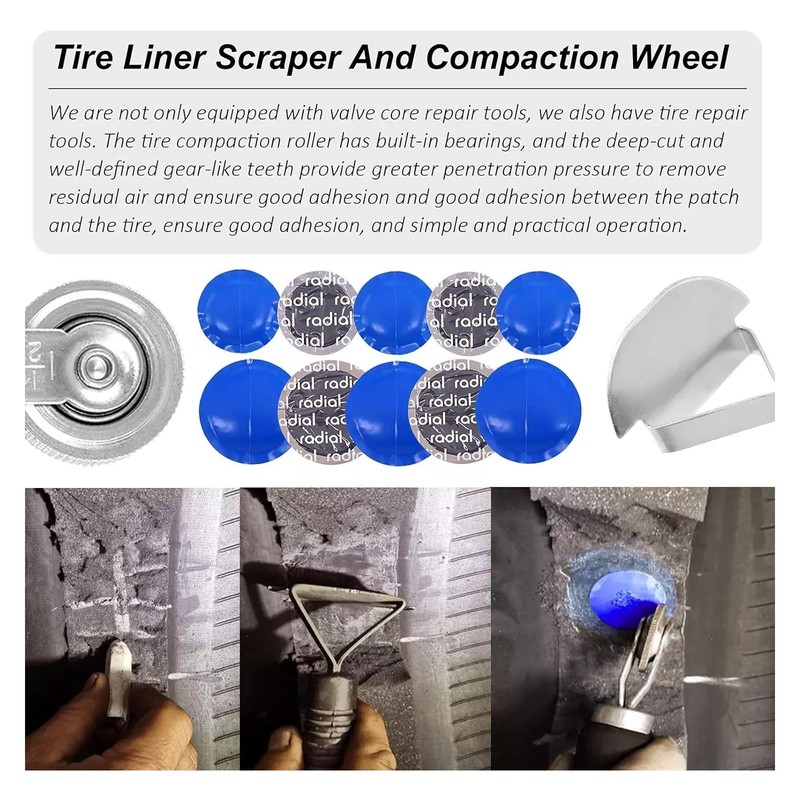 - Practical Features: This tire repair kit makes tire repair more convenient and fast, providing effective sealing between the patch and the tire, restoring the tire's working condition and reducing the disposal of waste tires.