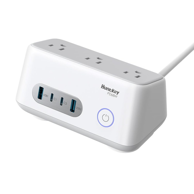 Huntkey 68W USB C Charging Station, 7-in-1 USB C Power Strip for iPhone14/15, 5ft Extension Cord with 3AC,2USB A,2USB C,Max 68W Power Delivery Accessory with Silicone Desktop Fixator (White)