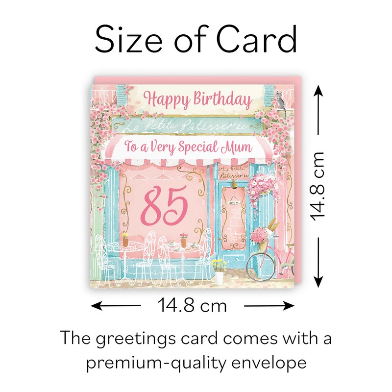 - Hunts England - 85th Mum La Petite Patisserie Birthday Card - Charming Pink Bakery, Pretty French Cafe Female Floral Design - Age 85 Happy Birthday Mum Card - Milo's Gallery