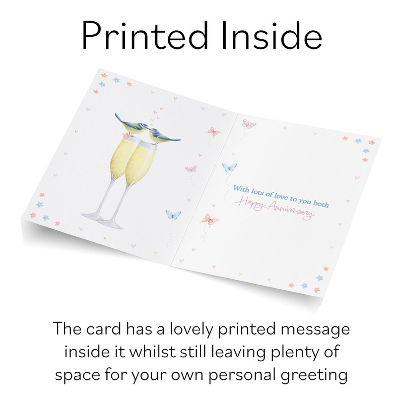 - PRINTED MESSAGE INSIDE 💫 - The champagne flutes anniversary card has a beautiful design and message printed inside it which makes your card even more special whilst still leaving you plenty of room to write your own message. Please see the inside image of the card to see the printed message