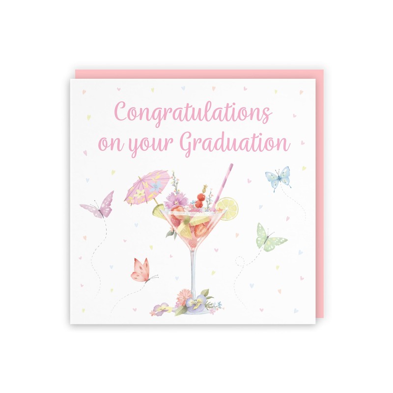 - Pink Cocktail And Butterflies Elegant Graduation Card For Her - Milo's Gallery - Female Congratulations Card - Well Done Card For Graduating