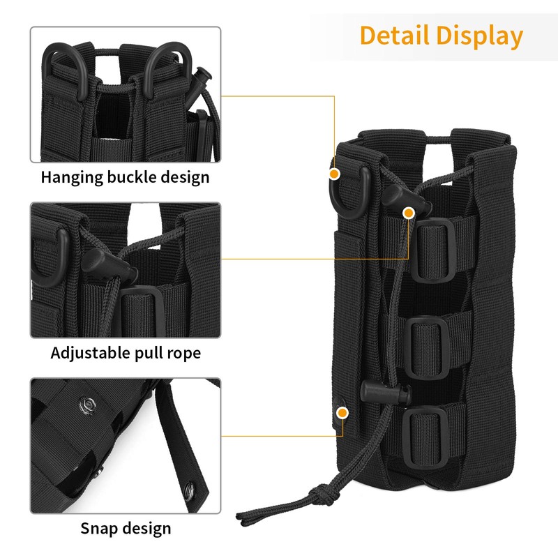 - ➤ Practical: It is a nice bottle holder widely used as molle accessories in our daily life and outdoors, such as in climbing, hunting, cycling, hiking, walking.