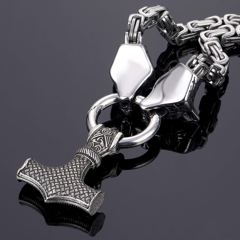 - Concepto de diseño: Mjolnir, en la mitología nórdica, Mjolnir es el martillo de Thor, el dios nórdico asociado al trueno. Mjolnir está representado en la mitología nórdica como una de las armas más temibles y poderosas que existen. Por lo tanto, los vikingos a menudo usan la joyería de "forma de martillo" como su amuleto.