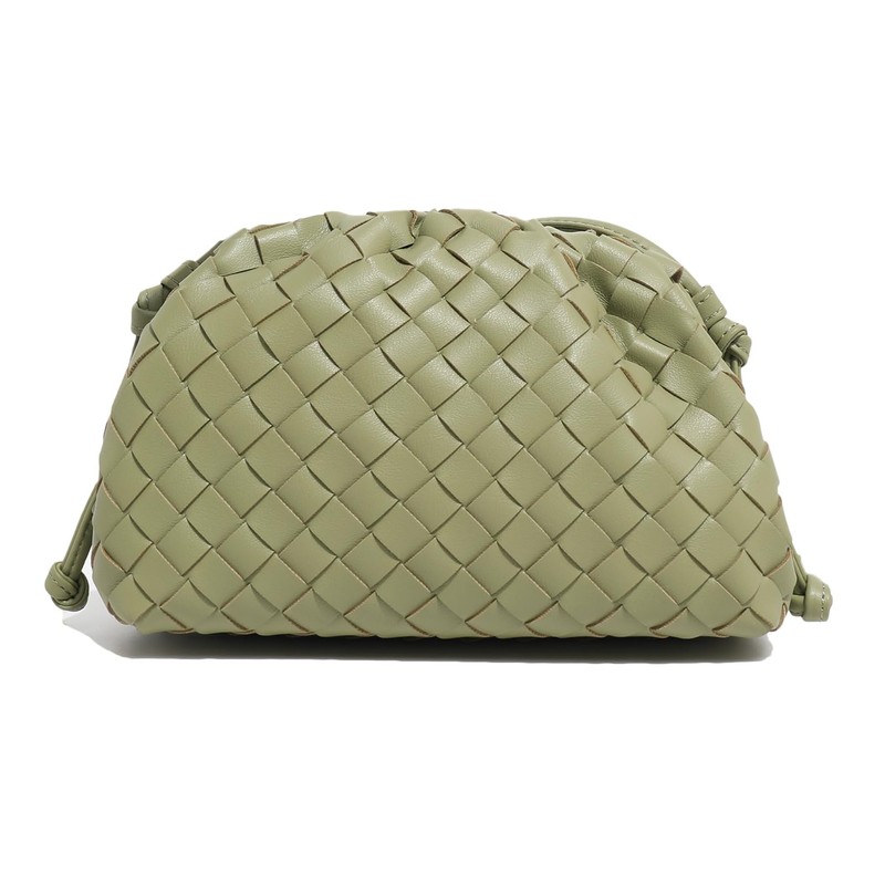 Huralona Dressy Pleated Vegan Leather Clutch Purse Super Soft Cloud Dumpling Clutch Bag for Women PU Evening Purse Handbag (Light Green Woven, S)
