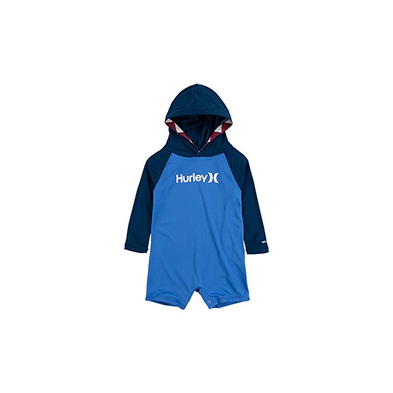 Hurley Baby Boy's Long Sleeve Hooded Coverall, Pacific Blue, 6M