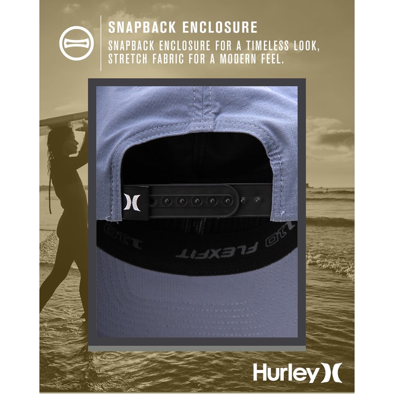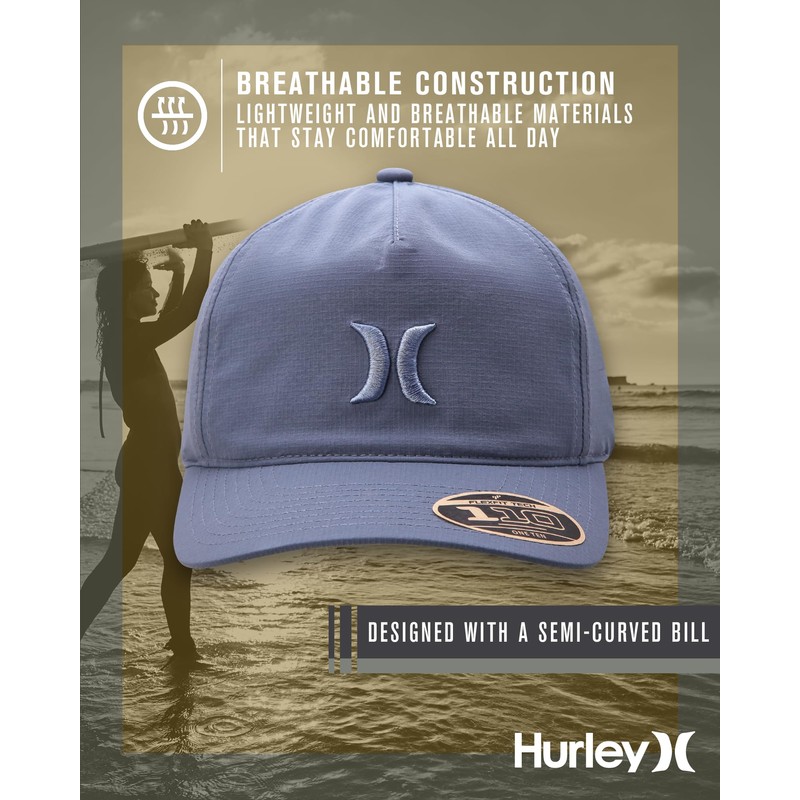 • Authentic Hurley: 4-Way Stretch Semi Curved Bill Men's Cap with Adjustable Snap; Our unique blend of style and performance makes us a global benchmark for performance in and out of the water