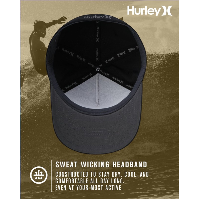 Hurley Mens Trucker Hat - Moisture Wicking and Quick Dry Ball Cap, Curved Brim Mesh Back Fitted Baseball Cap for Men, Size Large/X-Large, Black