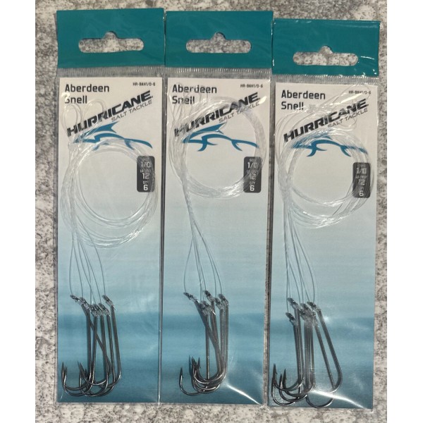 Hurricane 3 Packs Hurricane Snells Aberdeen Hooks Size 1/0 12 LB