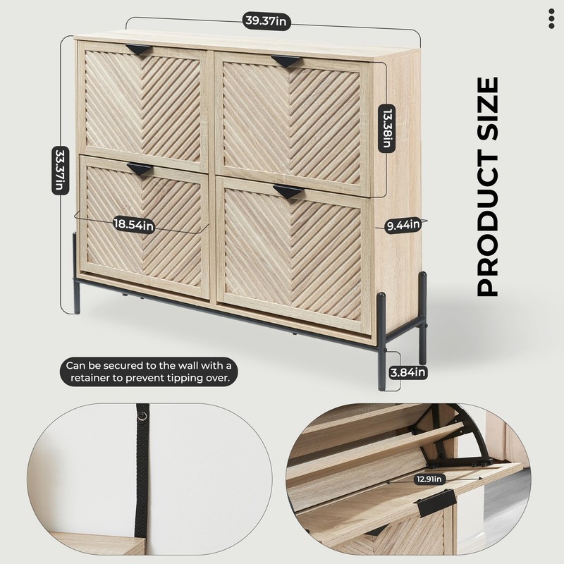 - 【Long-lasting】: Each component of this shoe cabinet is meticulously crafted from high-quality wood, including the drawers. The support legs are made of metal, providing additional stability for long-term use. To enhance safety, the top of the shoe cabinet is equipped with an anti-tip device to prevent accidental tipping, ensuring safe and secure use
