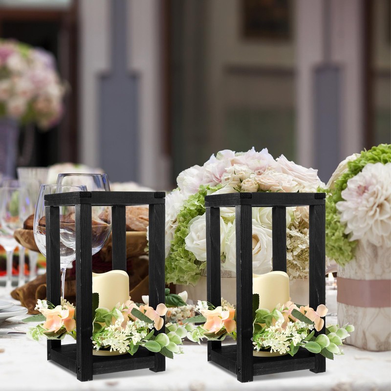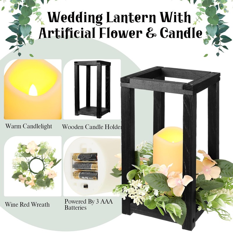 - Farmhouse Lantern: the lantern centerpieces for tables adds warmth and charm to most setting; At daytime, as an artistic piece, wood lanterns help enhance the aesthetic appeal of your rustic farmhouse wedding to create a romantic atmosphere; At night, rustic wooden lantern helps light up your dinner table, adding a vintage enchanting appeal to your wedding parties