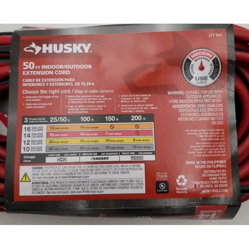 Husky 50 ft. 14 Gauge Medium Duty Indoor/Outdoor Extension Cord