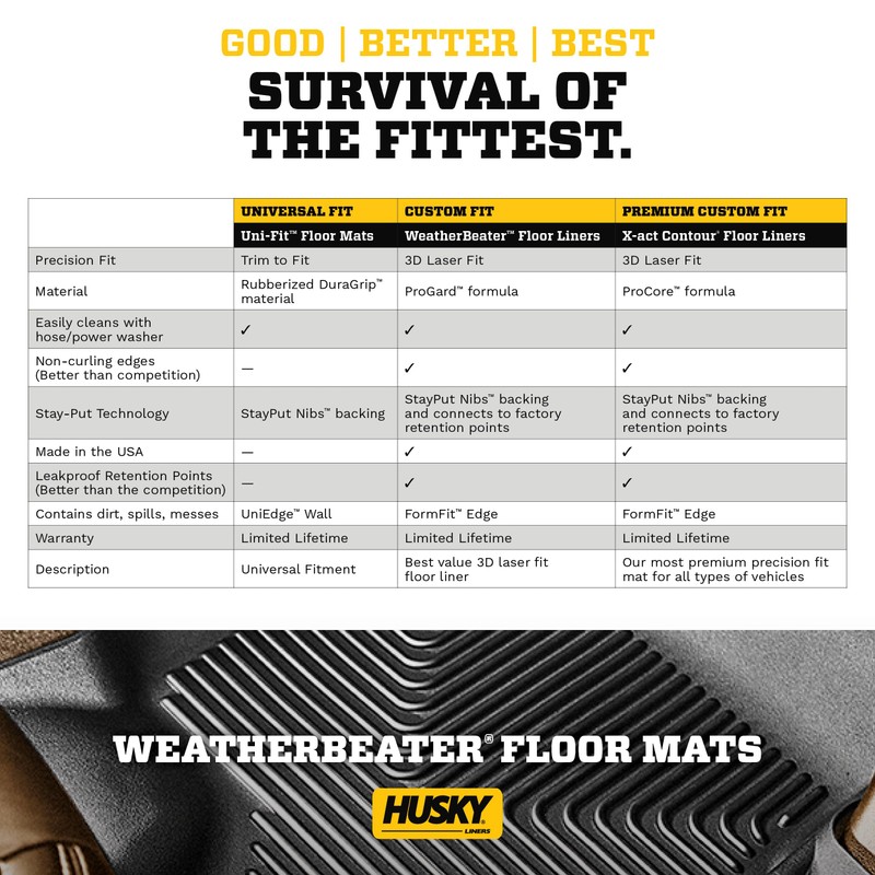 - MADE IN THE USA | Husky Liners Floor Liners stand up to everyday life and stay like new. Proudly made in the USA.