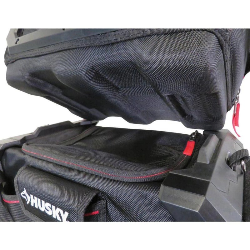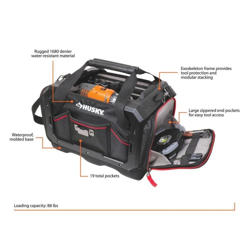 Husky Stack Tool Tote 16" Padded Handle, Zippered Top Heavy-Duty Polyester Black