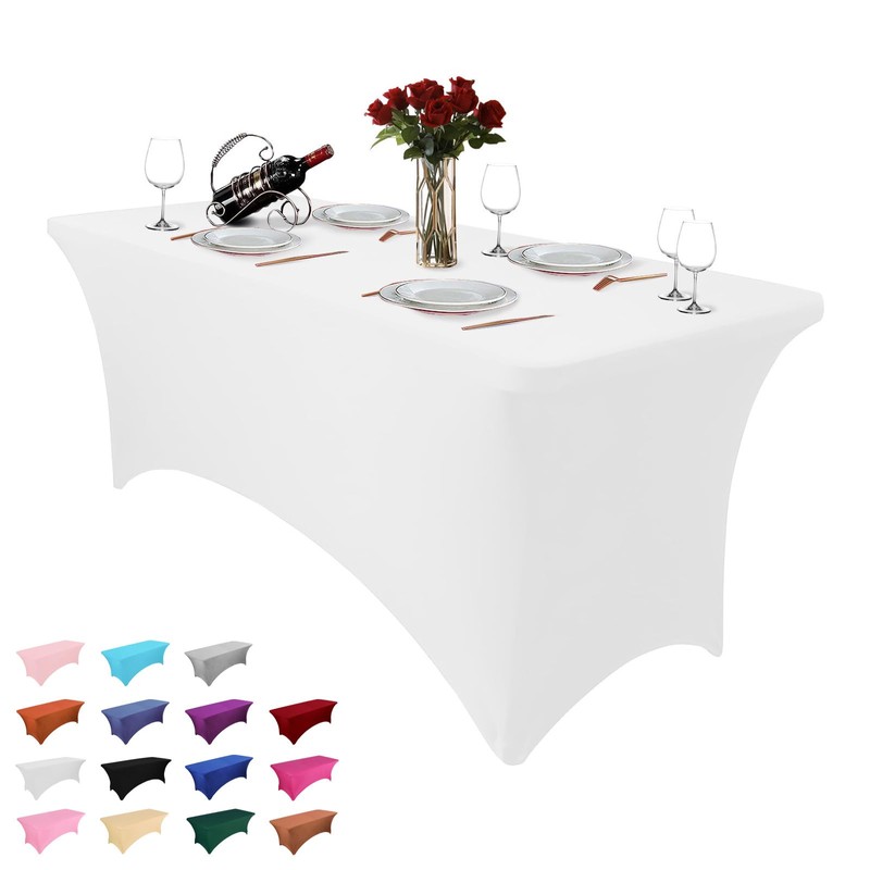- 【Thoughtful Design】: stretch spandex material and pockets for legs are designed for keeping the tablecloth securely in place to fit your table better and make a flat & professional look so that your table cover won't slip around or billow with wind. It works better and more beautiful than traditional tablecloths. These Stretch table covers are stain resistant, wrinkle resistant and fit for any events. They protect your tables from dust and scratches and they’ll adding colors to your events.