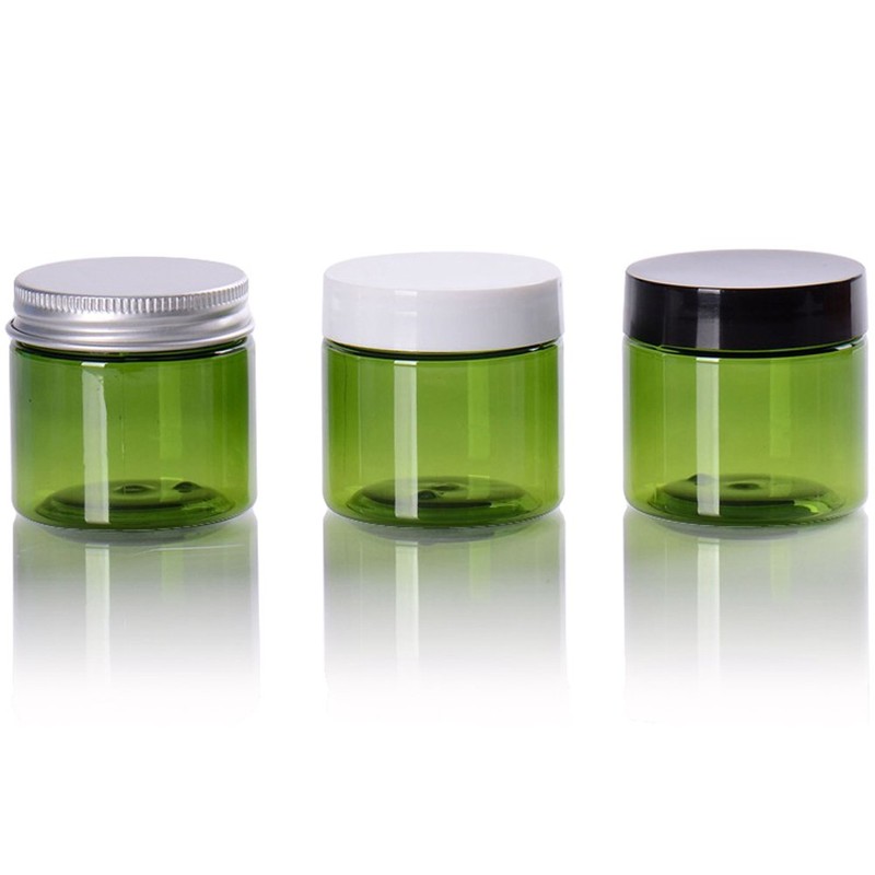 Hustar Pack of 5 50 g Green Plastic Cream Jars Cosmetic Containers Empty Containers for Travel Black Lid