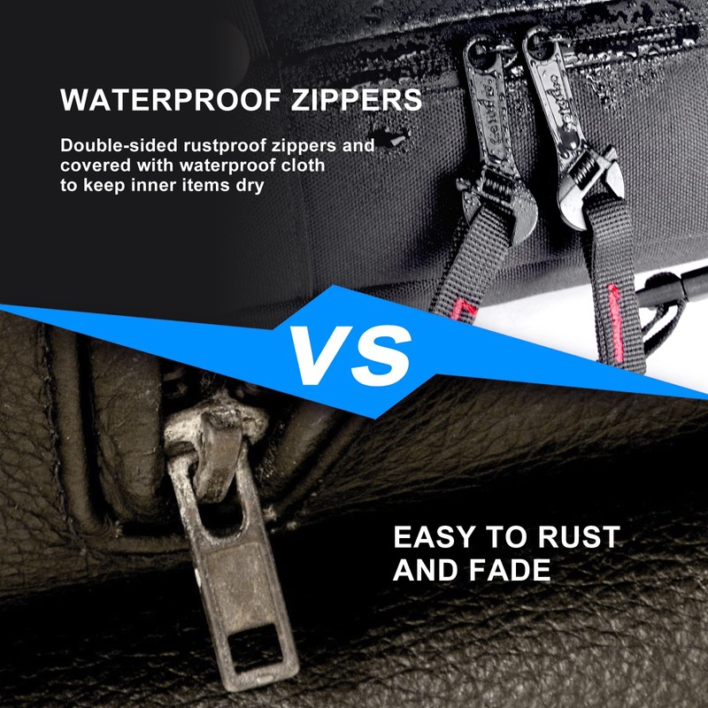 - ✅UPGRADED WATERPROOF DETAILS✅ (1) Our center seat storage bags for talon have waterproof zippers and covered with a layer of waterproof cloth. Prevent sand or mud from accumulating on the surface, avoid rainwater directly dropping on the zipper area,always keep the inner bag dry and clean. (2) There is waterproof pvc carbon fiber pattern piping on bag, not only can it maintain the bag shape, but also has better waterproof performance and fashion sense than the fabric piping on market.