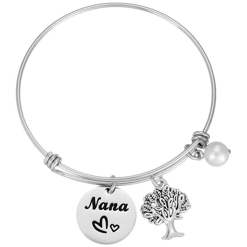 - 💗💗Nana Charm Expandable Wire Bangle Nana Jewelry Grandmother Gift for Family Nana💗💗💗---Engraved with the sweet word "Nana"Best Grandmother Jewelry gift for nana from granddaughter or grandson.A Perfect Way to Say "I Love You" and Express Your Appreciation to Your Favorite Grandma Nana Grammy.